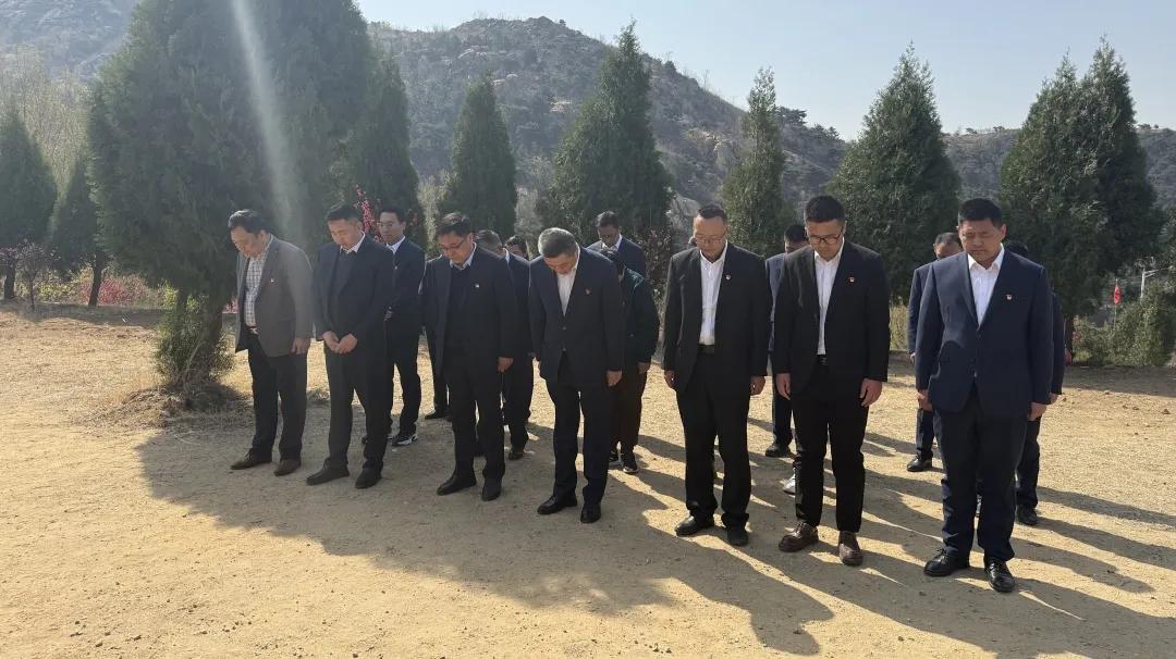上午10:00,在庄严肃穆的徂徕山革命烈士陵园举行祭扫仪式。全体人员整齐列队,面向烈士陵园肃立默哀,深切悼念为民族独立和人民解放事业英勇献身的革命先烈。四名党员代表缓步上前敬献花篮,董事长陈有刚和党委副书记王荣诚仔细整理缎带。全体人员依次瞻仰烈士陵园,鲜花寄哀思,行动表敬意。