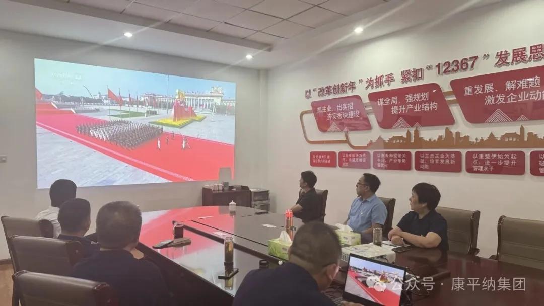 2025年9月3日上午,纪念中国人民抗日战争暨世界反法西斯战争胜利80周年阅兵式在北京天安门广场隆重举行。山东康平纳集团组织全体党员、集团职能人员集体观看阅兵仪式直播。