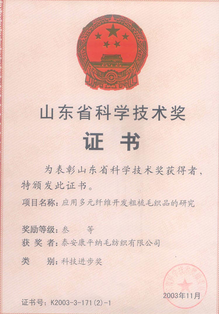 2003年山东省科技进步奖三等奖