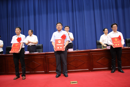5月31日上午,市委、市政府召开全市科学技术奖励大会,表彰为我市科技创新和现代化建设做出突出贡献的单位和科技工作者。 山东康平纳集团产学研合作研发的CM0702全自动筒子纱包装生产线荣获2016年泰安市科学技术进步奖一等奖,集团董事长陈队范参加此次大会并上台领奖。 奖励大会现场 上台领奖